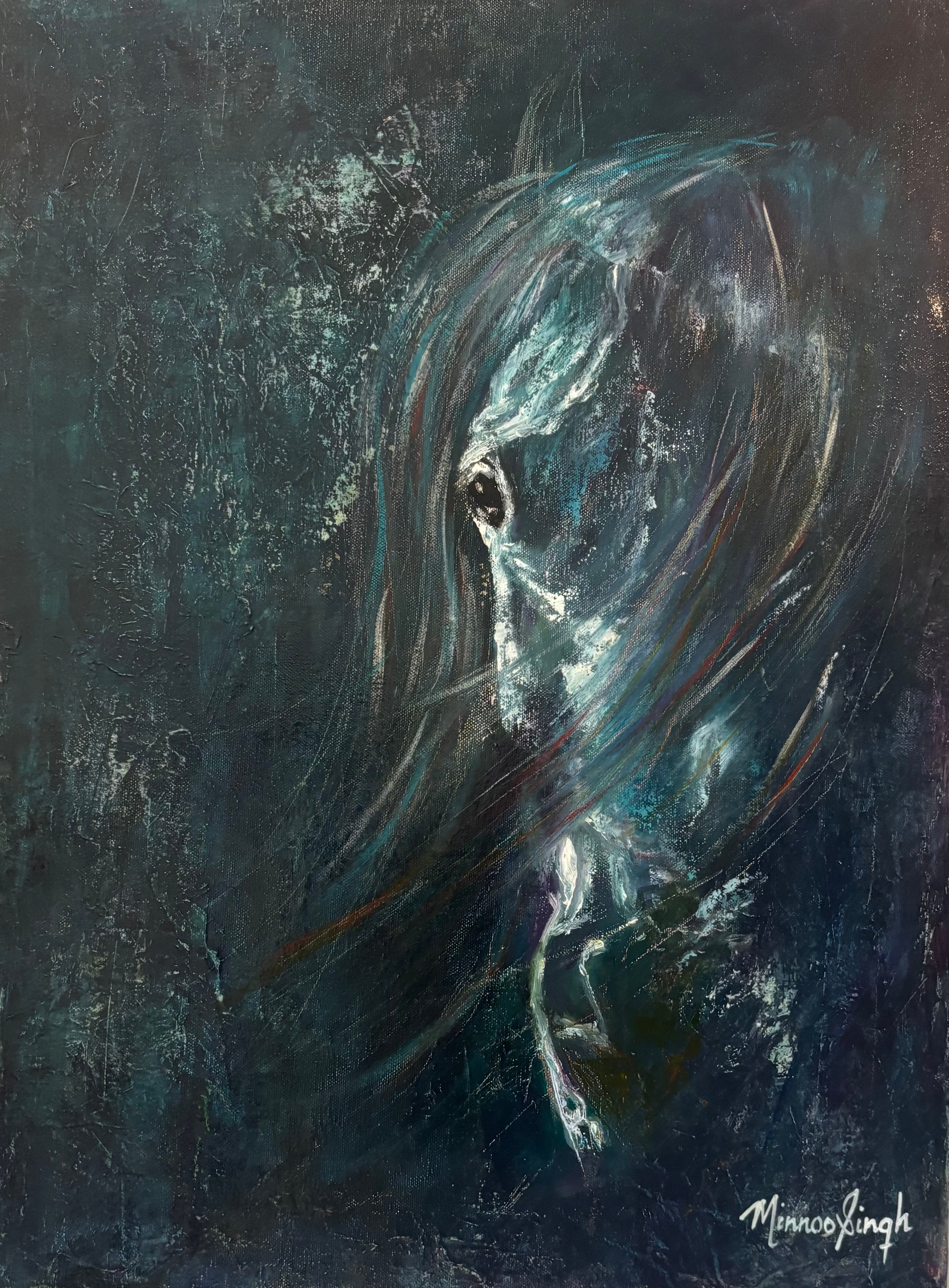 Minnoo’s own profession as an educationist and her role as am Army wife herself, kept her in the midst of a creative milieu with multiple opportunities to display her artistic talents. It became an effortless transition for her to now, at 58, change her lifestyle and be a full time artist. She took various courses and before she realised it, she had applied for a complete booth at a well-reputed exhibition at Bombay! “What a wonderful experience that was! I felt I had entered the world of artists. I also felt the need to explore further and deeper.” That is when Minnoo decided to enrol with the Milan Art Institute for their Mastery Programme and started working towards her graduation experimenting, introspecting, working on her process, her style and connecting with her voice. “What I paint must bring beauty and value to the life of the viewer. My brushstrokes allow me the freedom to create art layered in the richness of colour, powered with the intensity of emotional connect. “