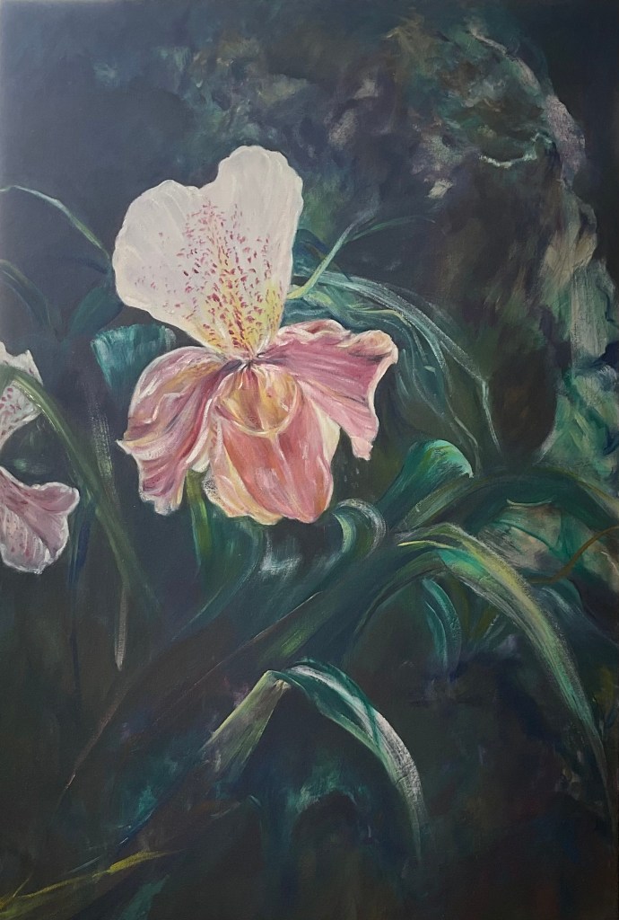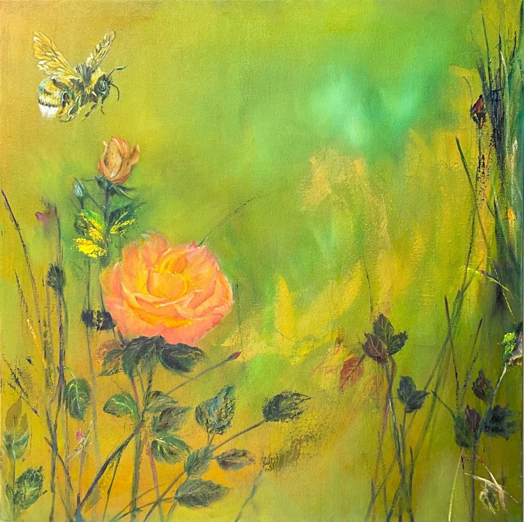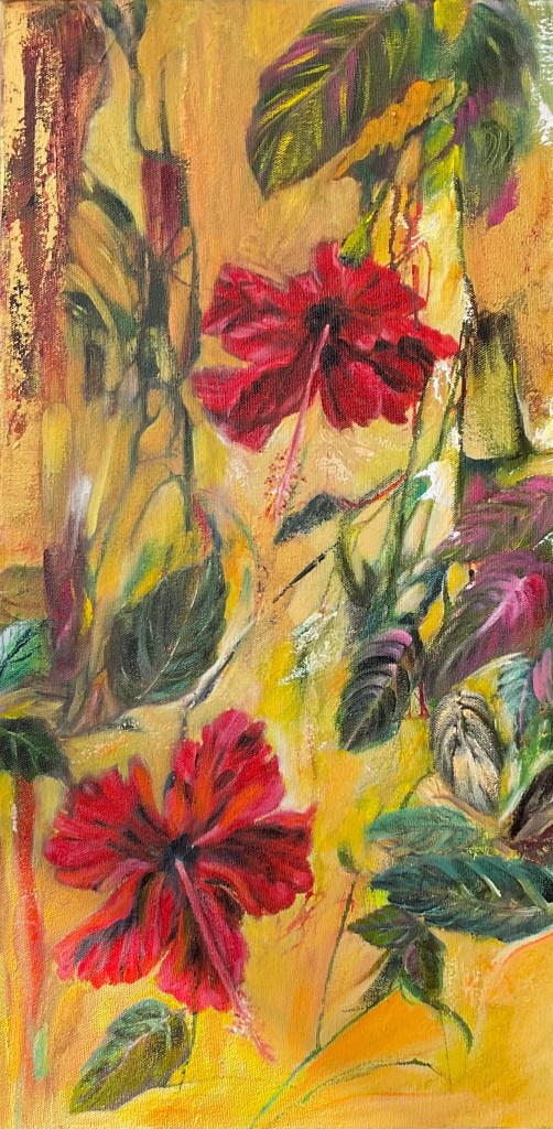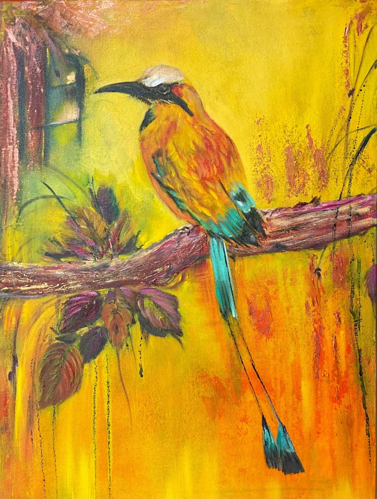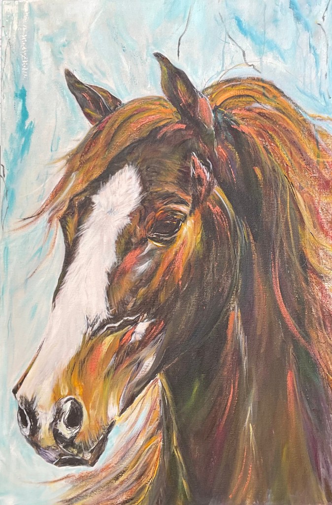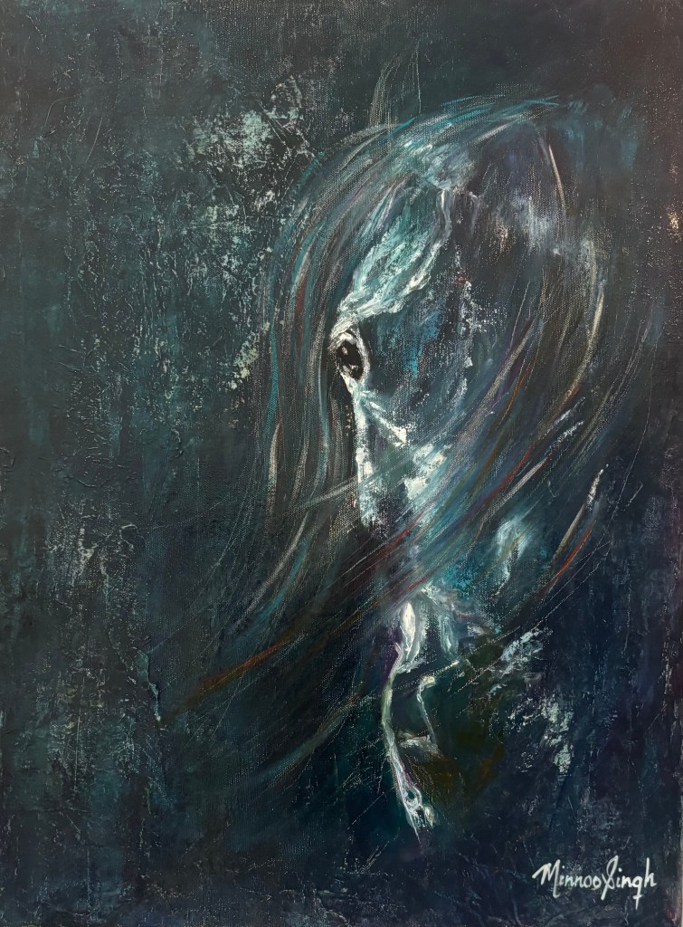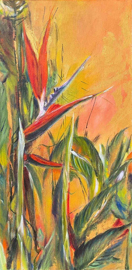 All in one, representing strength, beauty and elegance, emanating an immediate emotional connect, lending itself to freedom of moving the brush in expressive looseness.Alas! The long tail, the kind of plait I would have liked, once, for myself!After a lot of humming and hawing, I got back into the saddle of my artistic journey with this horse. I trusted it to empower me adequately enough to follow the chosen path and also to steer me back when i went astray.Always in action. The bird of paradise combines my love for birds and flowers.